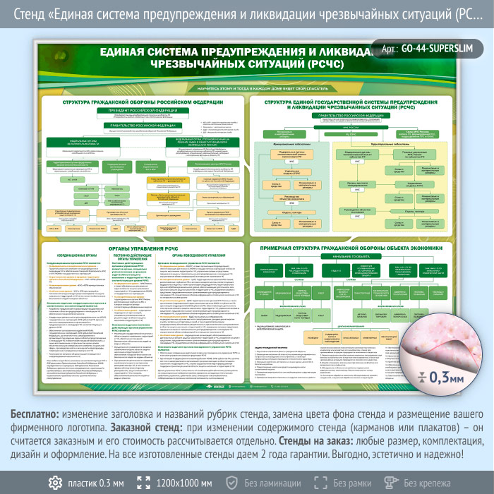 Стенд «Единая система предупреждения и ликвидации чрезвычайных ситуаций (РСЧС)» (GO-44-SUPERSLIM) в Великом Новгороде купить