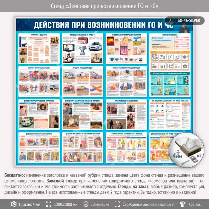 Стенд «Действия при возникновении ГО и ЧС» (GO-46-SILVER) в Великом Новгороде купить