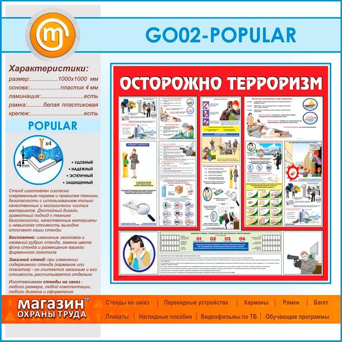 Стенд «Осторожно терроризм!» (GO-02-POPULAR) в Великом Новгороде купить