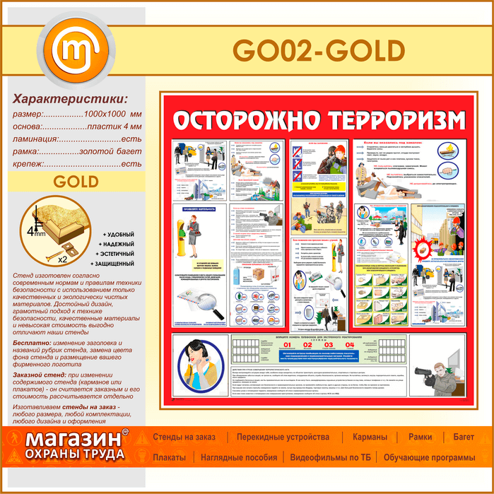 Стенд «Осторожно терроризм!» (GO-02-GOLD) в Великом Новгороде купить