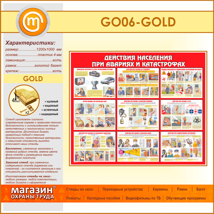 Стенд «Действия населения при авариях и катастрофах» (GO-06-GOLD) в Великом Новгороде купить