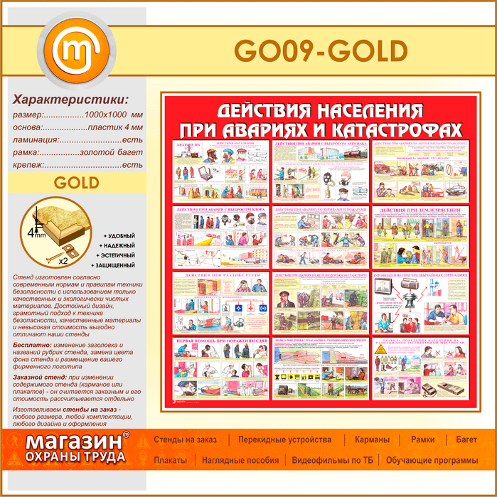 Стенд «Действия населения при авариях и катастрофах» (GO-09-GOLD) в Великом Новгороде купить