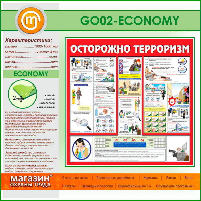 Стенд «Осторожно терроризм!» (GO-02-ECONOMY) в Великом Новгороде купить
