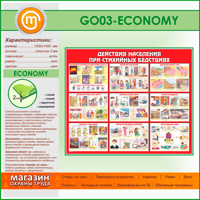 Стенд «Действия населения при стихийных бедствиях» (GO-03-ECONOMY) в Великом Новгороде купить