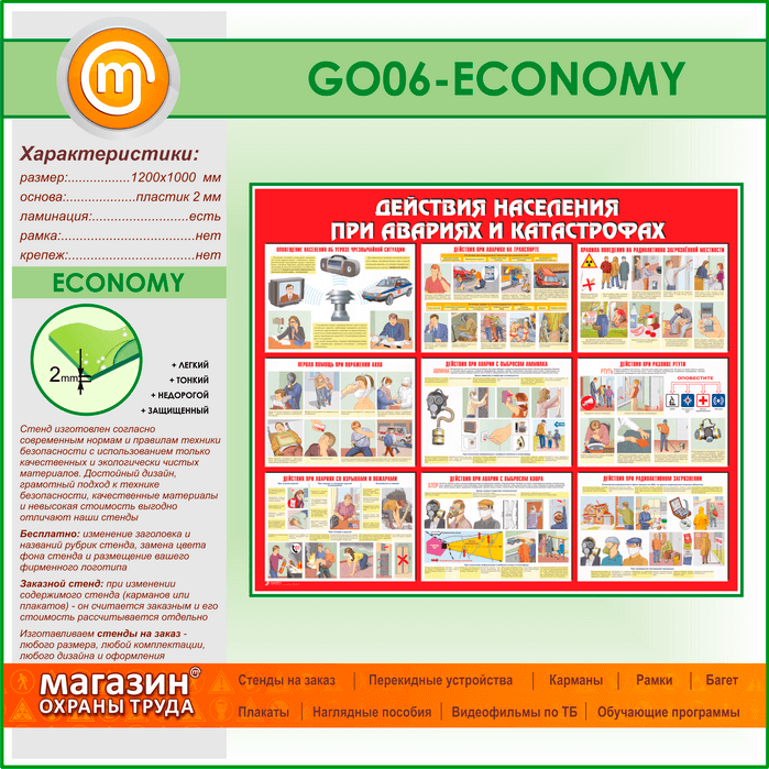 Стенд «Действия населения при авариях и катастрофах» (GO-06-ECONOMY) в Великом Новгороде купить