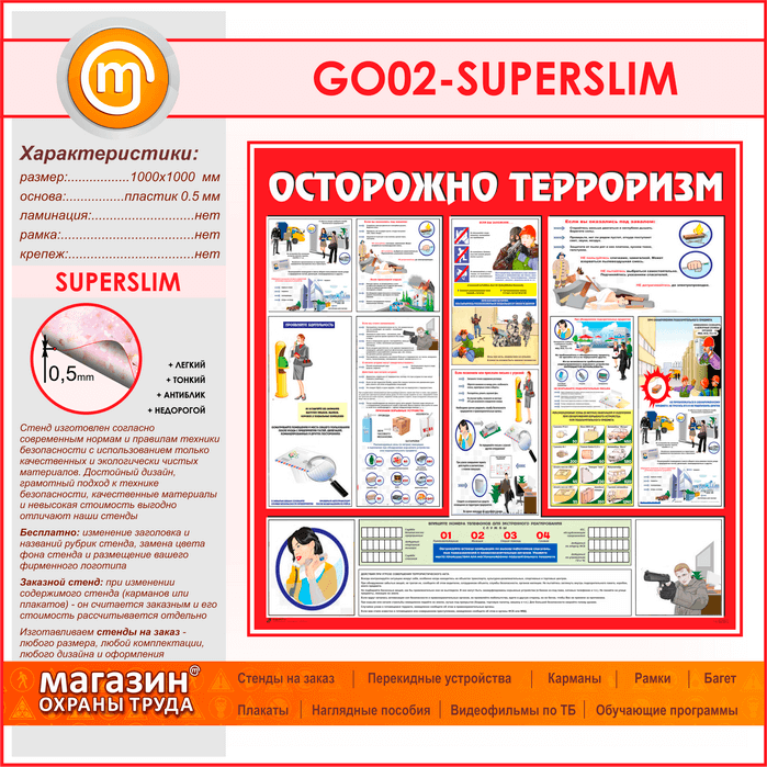 Стенд «Осторожно терроризм!» (GO-02-SUPERSLIM) в Великом Новгороде купить