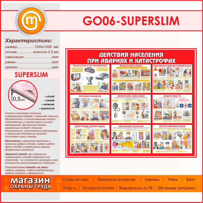 Стенд «Действия населения при авариях и катастрофах» (GO-06-SUPERSLIM) в Великом Новгороде купить