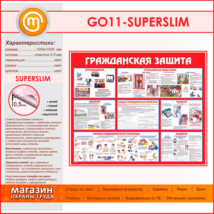 Стенд «Гражданская защита» (GO-11-SUPERSLIM) в Великом Новгороде купить