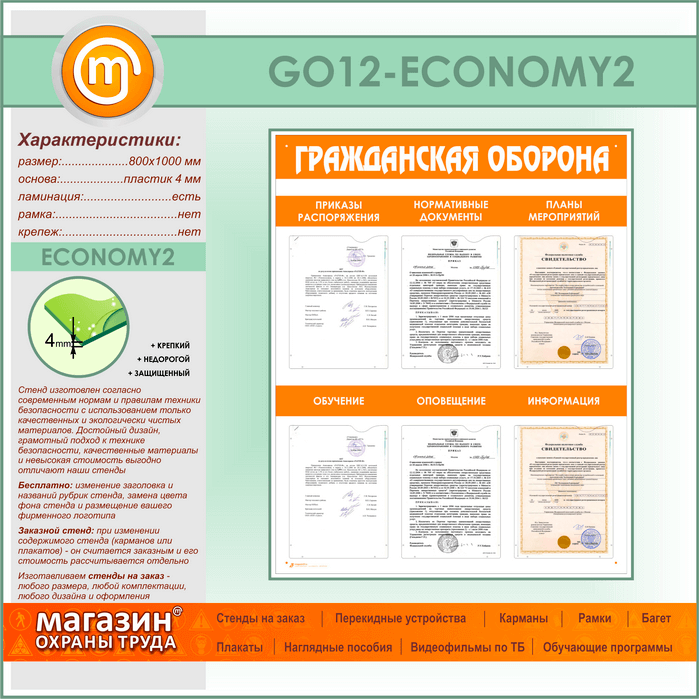 Стенд «Гражданская оборона» с 6 плоскими карманами (GO-12-ECONOMY2) в Великом Новгороде купить
