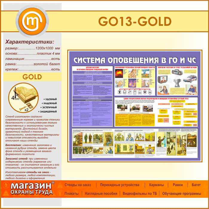 Стенд «Система оповещения в ГО и ЧС» (GO-13-GOLD) в Великом Новгороде купить