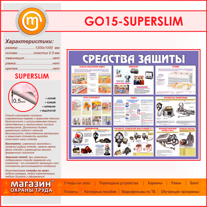 Стенд «Средства защиты» (GO-15-SUPERSLIM) в Великом Новгороде купить