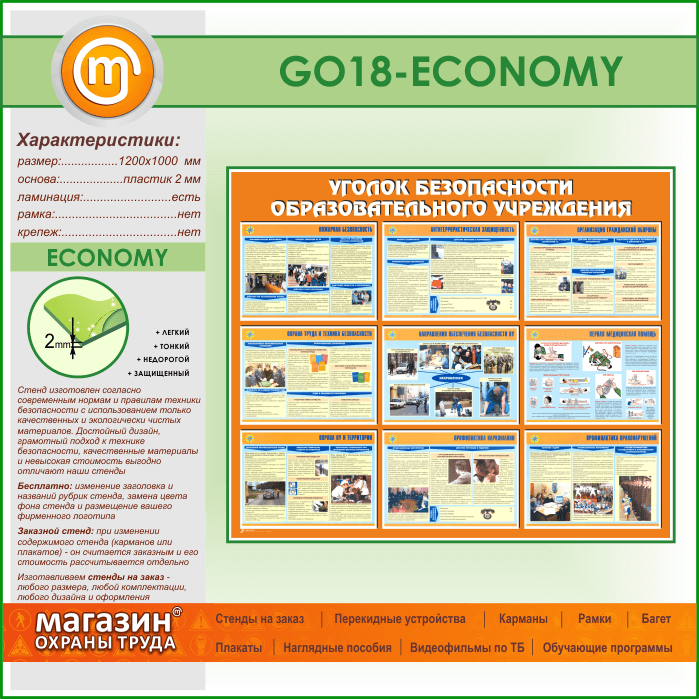 Стенд «Уголок безопасности образовательного учреждения» (GO-18-ECONOMY) в Великом Новгороде купить
