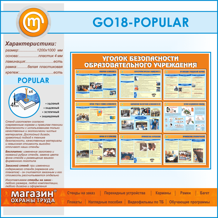 Стенд «Уголок безопасности образовательного учреждения» (GO-18-POPULAR) в Великом Новгороде купить