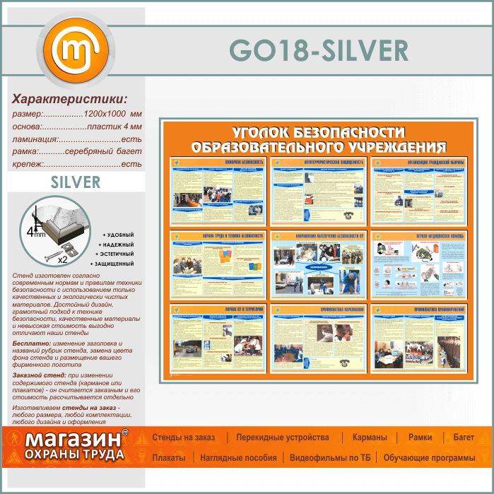 Стенд «Уголок безопасности образовательного учреждения» (GO-18-SILVER) в Великом Новгороде купить