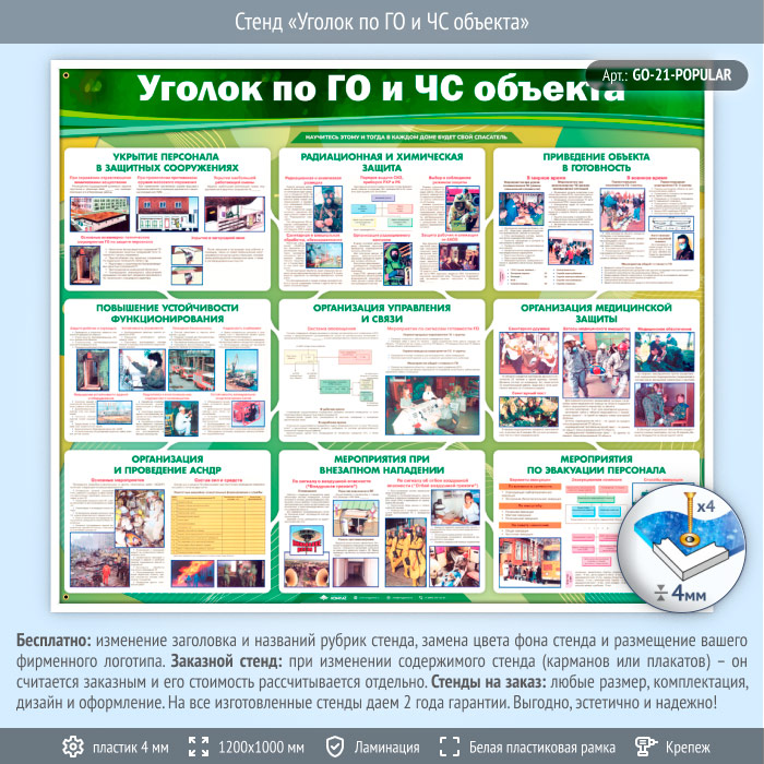 Стенд «Уголок по ГО и ЧС объекта» (GO-21-POPULAR) в Великом Новгороде купить
