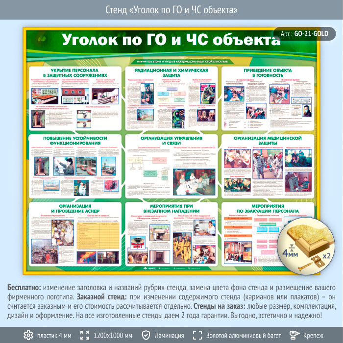 Стенд «Уголок по ГО и ЧС объекта» (GO-21-GOLD) в Великом Новгороде купить