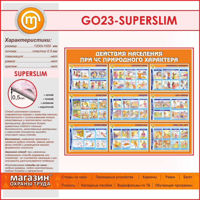 Стенд «Действия населения при ЧС природного характера» (GO-23-SUPERSLIM) в Великом Новгороде купить