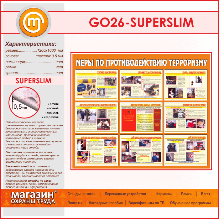 Стенд «Меры по противодействию терроризму» (GO-26-SUPERSLIM) в Великом Новгороде купить