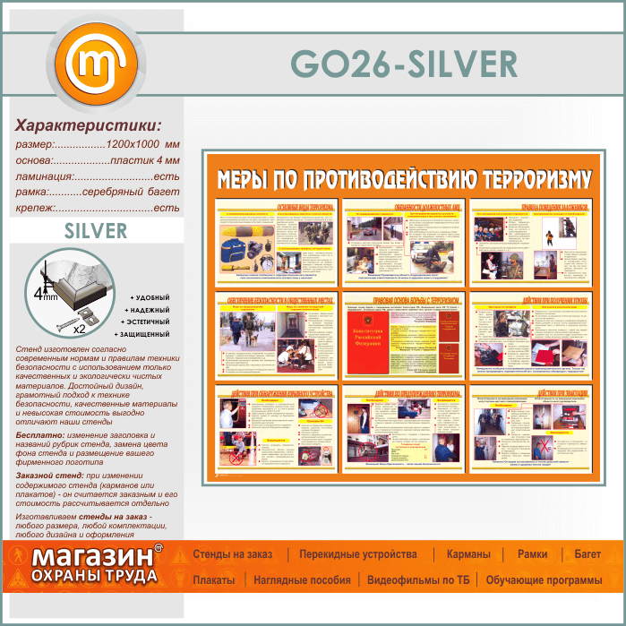 Стенд «Меры по противодействию терроризму» (GO-26-SILVER) в Великом Новгороде купить