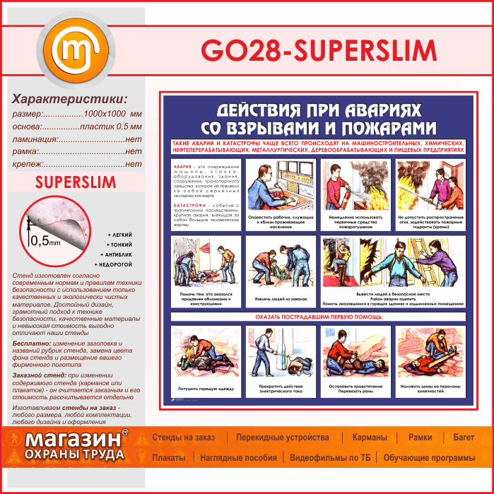 Стенд «Действия при авариях со взрывами и пожарами» (GO-28-SUPERSLIM) в Великом Новгороде купить