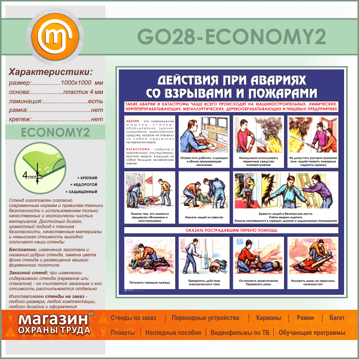 Стенд «Действия при авариях со взрывами и пожарами» (GO-28-ECONOMY2) в Великом Новгороде купить