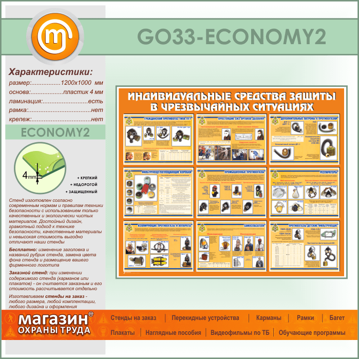 Стенд «Индивидуальные средства защиты в чрезвычайных ситуациях» (GO-33-ECONOMY2) в Великом Новгороде купить