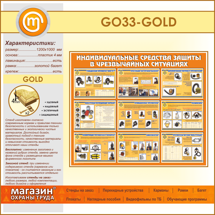Стенд «Индивидуальные средства защиты в чрезвычайных ситуациях» (GO-33-GOLD) в Великом Новгороде купить