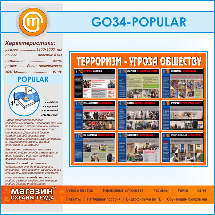 Стенд «Терроризм - угроза обществу» (GO-34-POPULAR) в Великом Новгороде купить