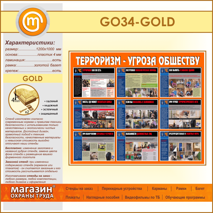 Стенд «Терроризм - угроза обществу» (GO-34-GOLD) в Великом Новгороде купить