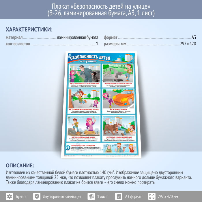 Плакат «Безопасность детей на улице» (В-26, ламинированная бумага, А3, 1 лист) в Великом Новгороде купить