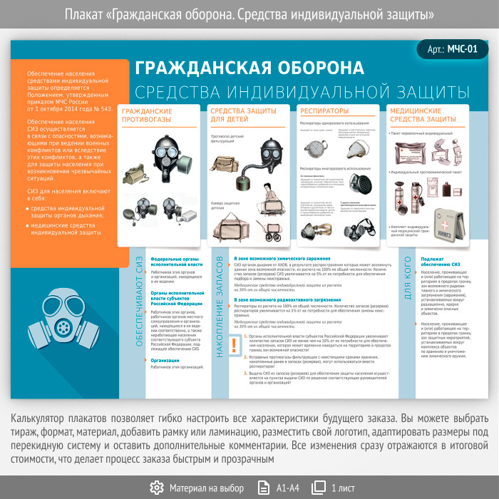 Плакат «Гражданская оборона. Средства индивидуальной защиты» (МЧС-01, 1 лист) в Великом Новгороде купить