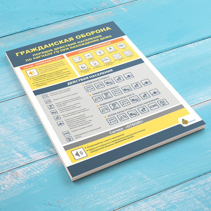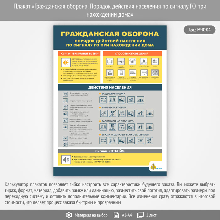 Плакат «Гражданская оборона. Порядок действия населения по сигналу ГО при нахождении дома» (МЧС-04, 1 лист) в Великом Новгороде купить