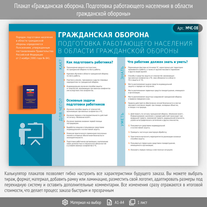 Плакат «Гражданская оборона. Подготовка работающего населения в области гражданской обороны» (МЧС-08, 1 лист) в Великом Новгороде купить