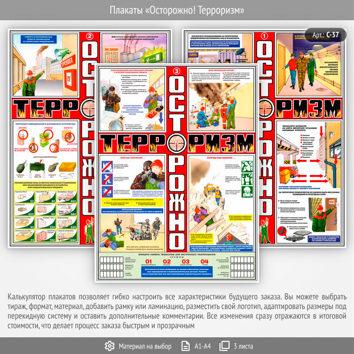 Плакаты «Осторожно! Терроризм» (С-37, 3 листа) в Великом Новгороде купить