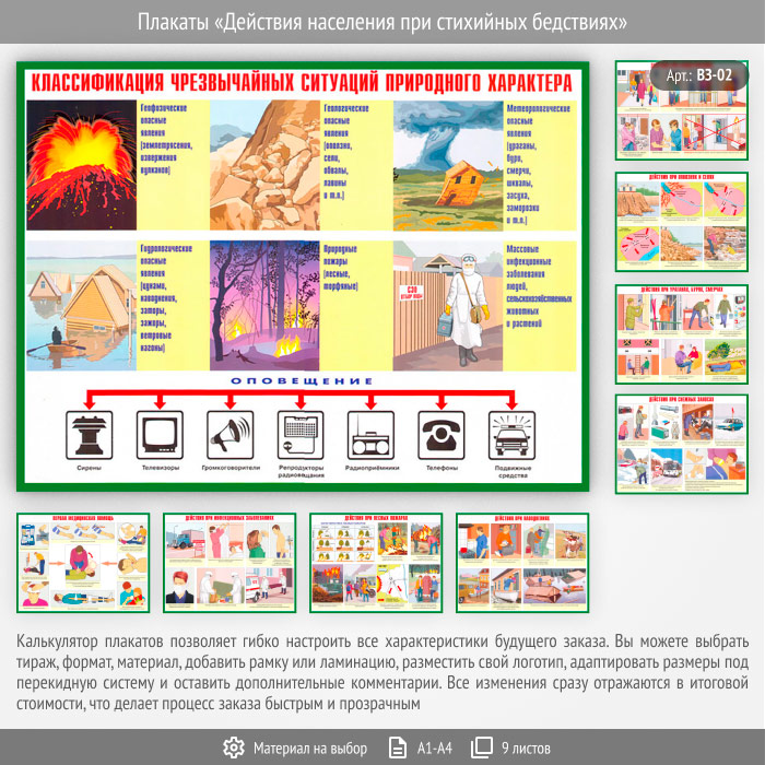 Плакаты «Действия населения при стихийных бедствиях» (ВЗ-02, 9 листов) в Великом Новгороде купить