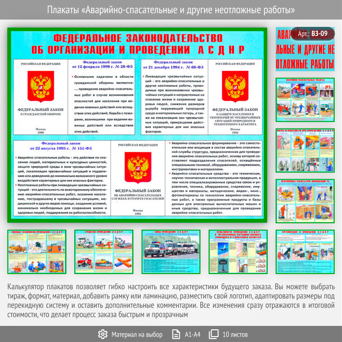 Плакаты «Аварийно-спасательные и другие неотложные работы» (ВЗ-09, 9 листов) в Великом Новгороде купить