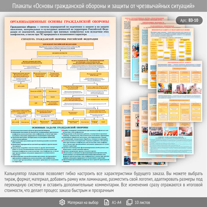 Плакаты «Основы гражданской обороны и защиты от чрезвычайных ситуаций» (ВЗ-10, 10 листов) в Великом Новгороде купить