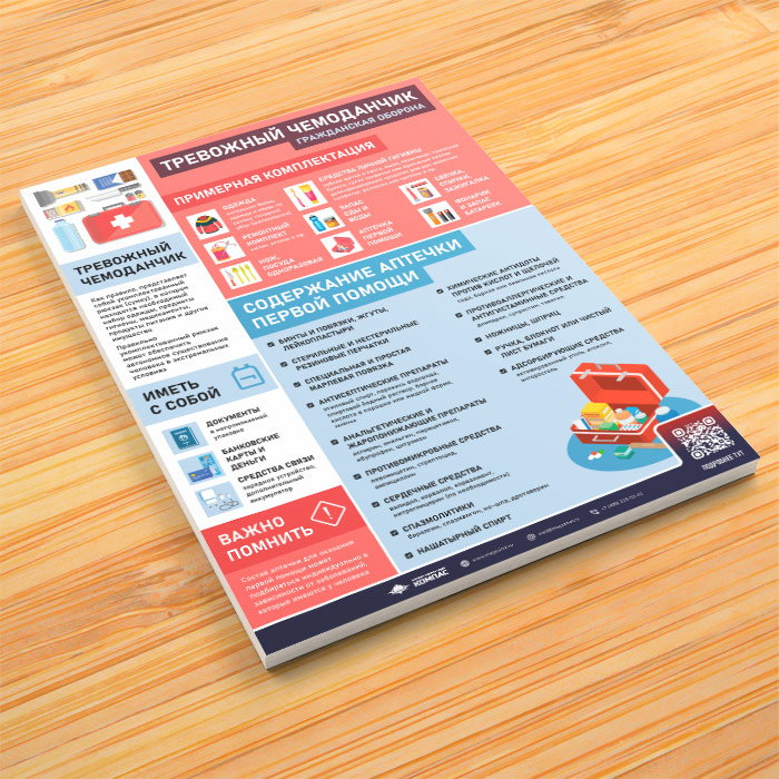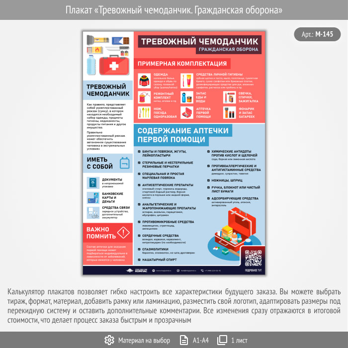 Плакат «Тревожный чемоданчик. Гражданская оборона» с QR (М-145, 1 лист) в Великом Новгороде купить