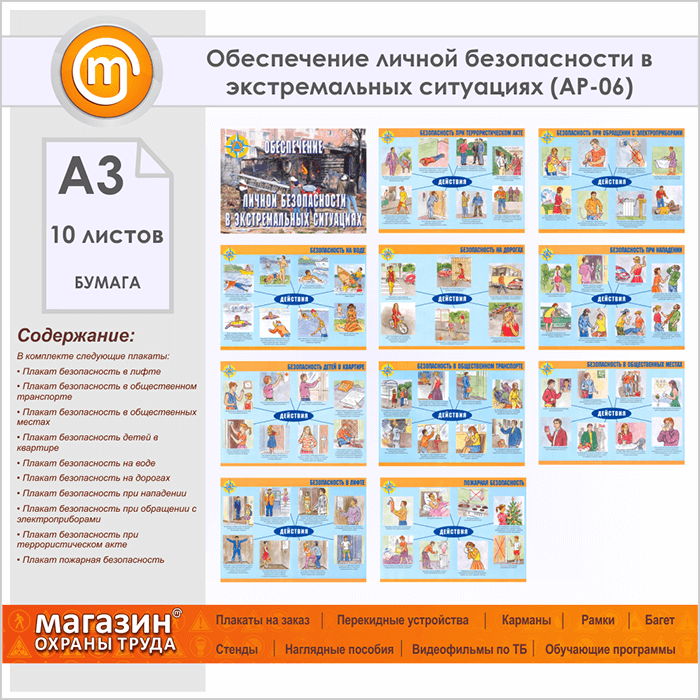 Плакаты «Обеспечение личной безопасности в экстремальных ситуациях» (АР-06, бумага, А3, 10 листов) в Великом Новгороде купить