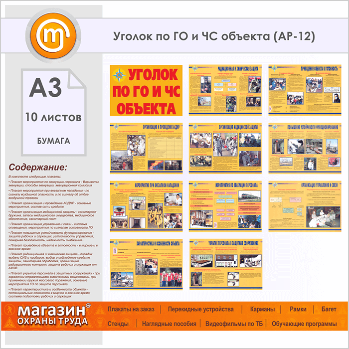 Плакаты «Уголок по ГО и ЧС объекта» (АР-12, бумага, А3, 10 листов) в Великом Новгороде купить