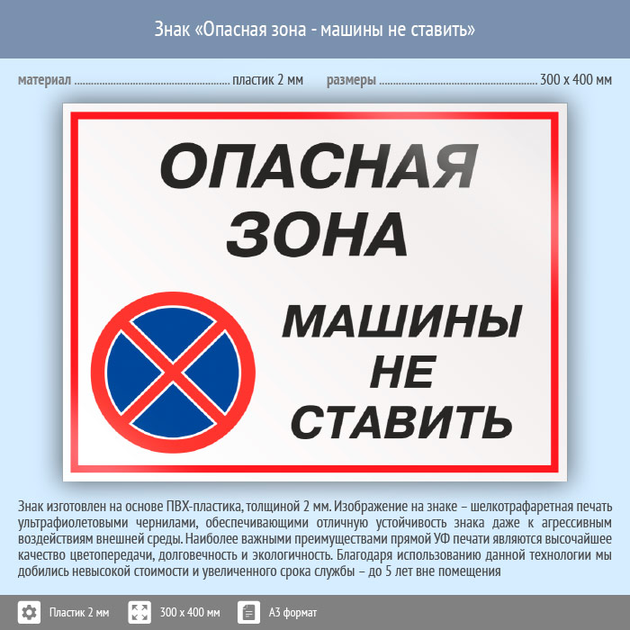 Знак «Опасная зона - машины не ставить», КЗ-32 (пластик, 400х300 мм) в Великом Новгороде купить