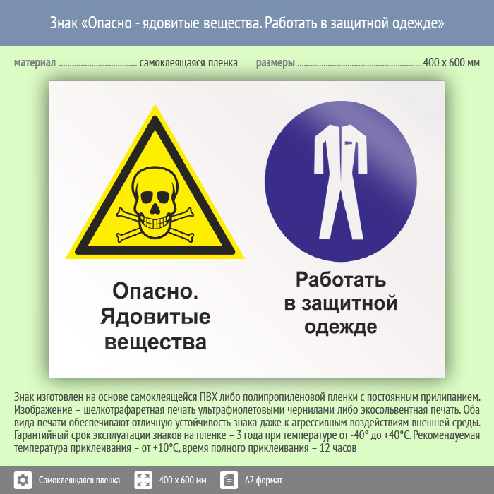 Знак «Опасно - ядовитые вещества. Работать в защитной одежде», КЗ-42 (пленка, 600х400 мм) в Великом Новгороде купить