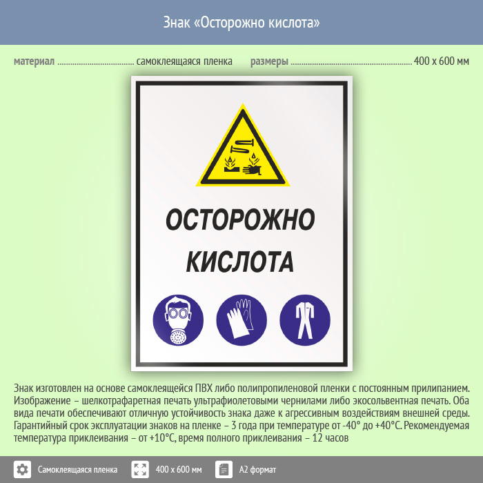 Знак «Осторожно кислота», КЗ-61 (пленка, 400х600 мм) в Великом Новгороде купить