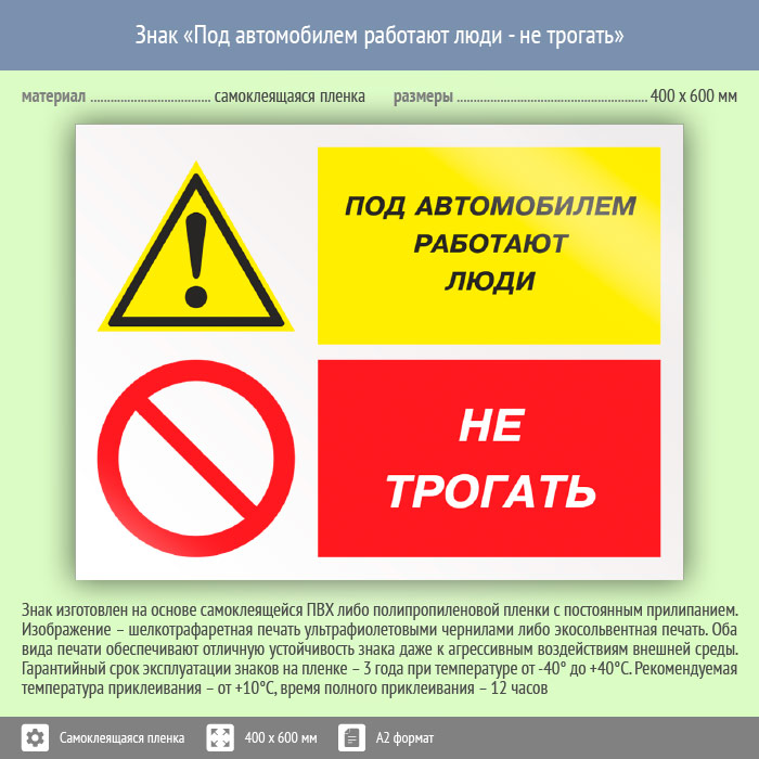 Знак «Под автомобилем работают люди - не трогать», КЗ-66 (пленка, 600х400 мм) в Великом Новгороде купить