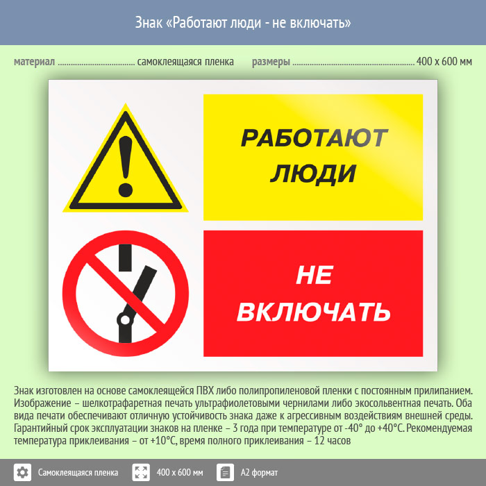 Знак «Работают люди - не включать», КЗ-83 (пленка, 600х400 мм) в Великом Новгороде купить
