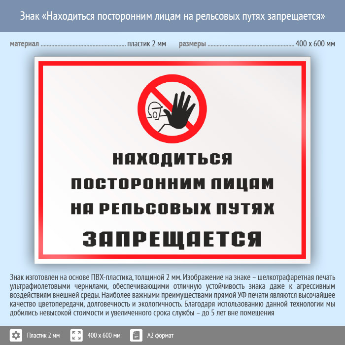 Знак «Находиться посторонним лицам на рельсовых путях запрещается», КЗ-25 (пластик, 600х400 мм) в Великом Новгороде купить