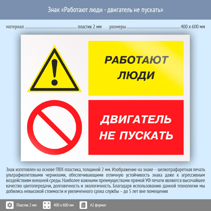 Знак «Работают люди - двигатель не пускать», КЗ-82 (пластик, 600х400 мм) в Великом Новгороде купить
