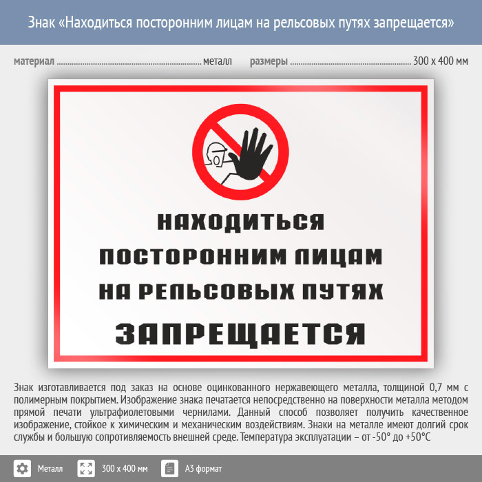 Знак «Находиться посторонним лицам на рельсовых путях запрещается», КЗ-25 (металл, 400х300 мм) в Великом Новгороде купить