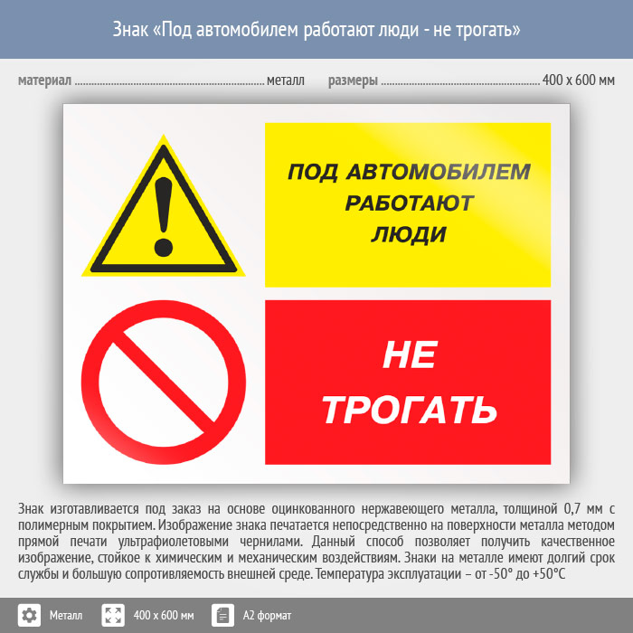 Знак «Под автомобилем работают люди - не трогать», КЗ-66 (металл, 600х400 мм) в Великом Новгороде купить