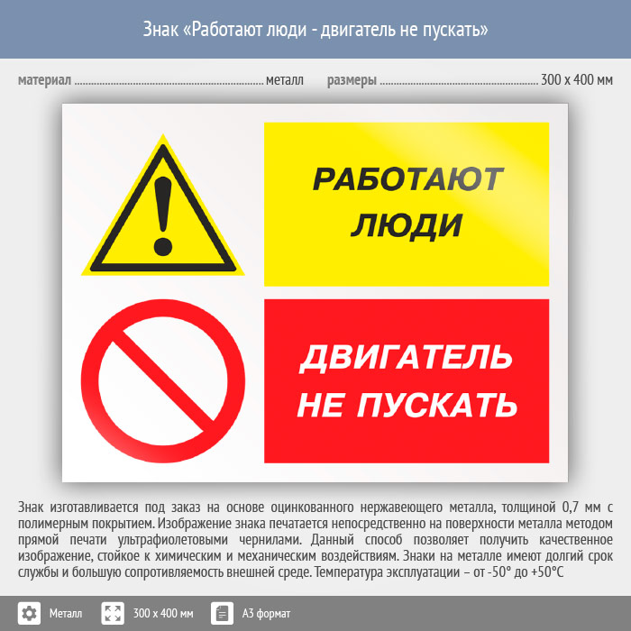 Знак «Работают люди - двигатель не пускать», КЗ-82 (металл, 400х300 мм) в Великом Новгороде купить